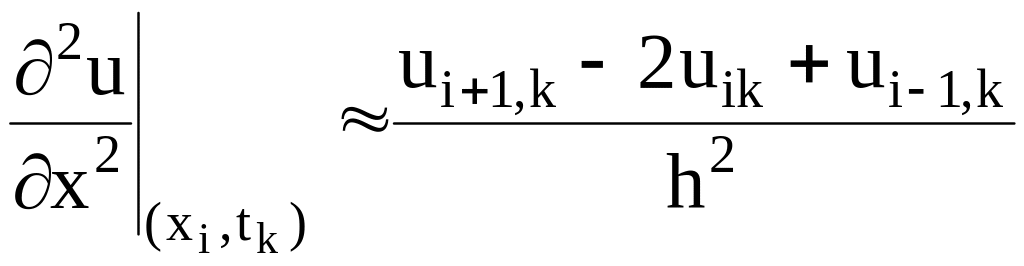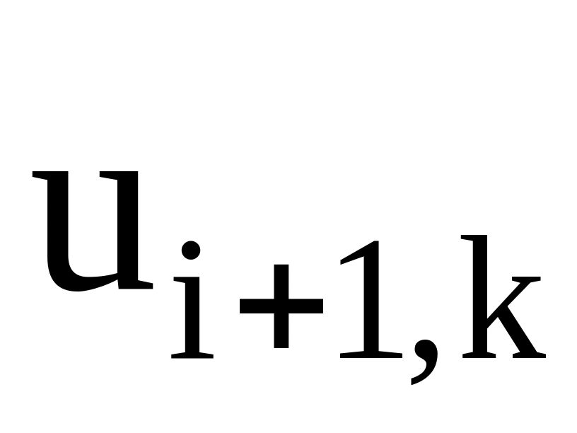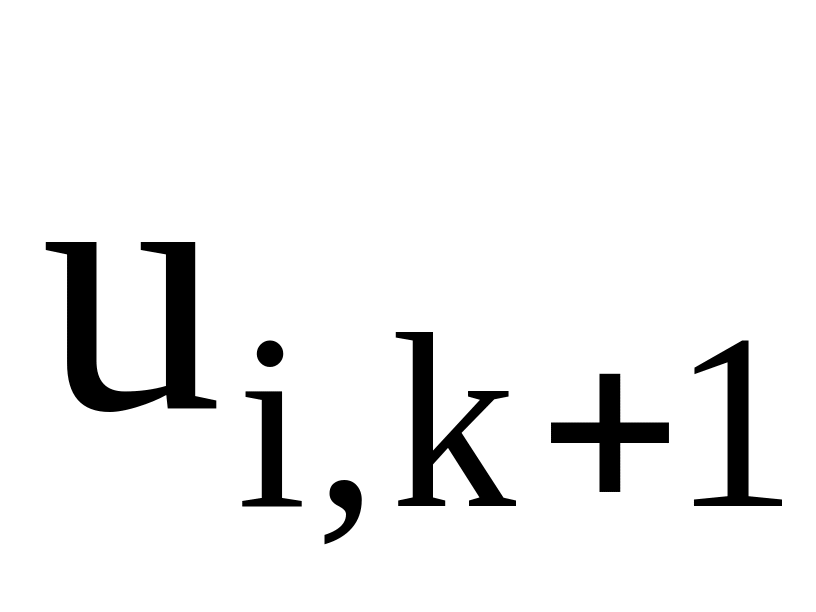 Полученная разностная схема является явной схемой. Из уравнения (7.33) видно, что для получения значений u(x,t) в (к+1) –м слое необходимы значения u(x,t) в двух предыдущих слоях.
