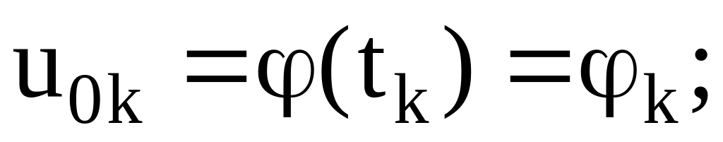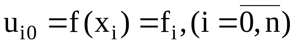Значения функции u(x,t) на нулевом слое (к=0) задаются первым начальным условием (7.29):