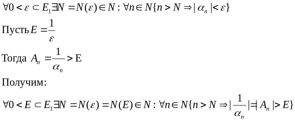 Теорема: Пусть αn – бесконечно малая ФНА. Тогда Аn = (1/ αn) – бесконечно большая ФНА