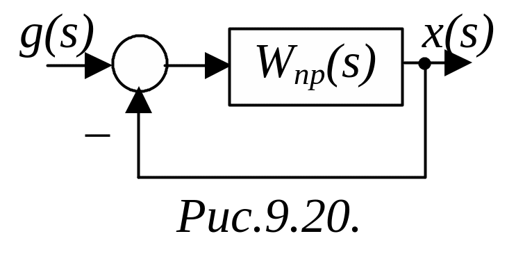 Проанализируем частный случай: при единичной отрицательной обратной связи (рис.9.20). В таком случае
