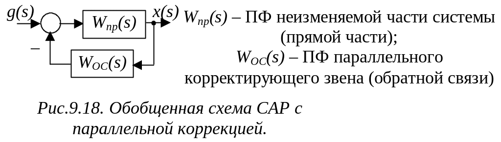 Пусть в системе управления во внутренней ее части используется параллельное корректирующее звено (рис.9.18).