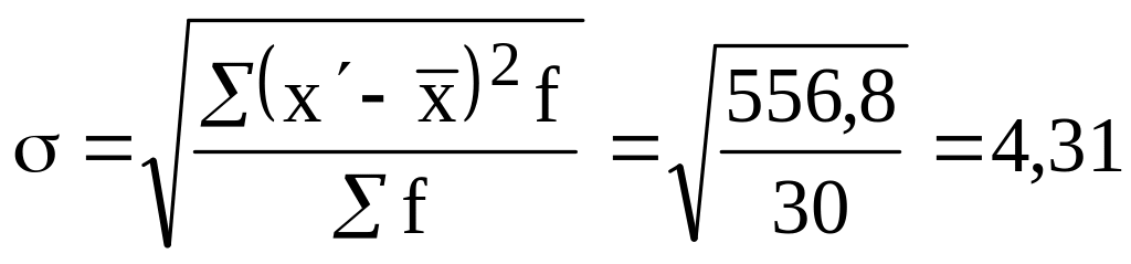 Коэффициент вариации используется для оценки типичности средних величин. Совокупность считается количественно однородной, если v<33%. |
