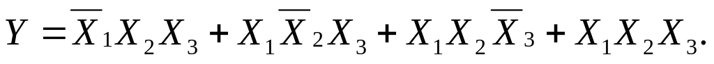 Отсюда, Y=Х1Х2+Х2Х3+Х1Х3. Эта форма записи является тупиковой.