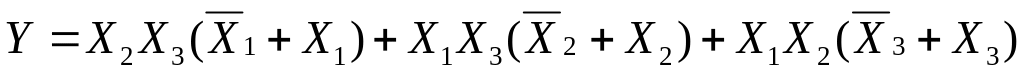 К слагаемому А=Х1Х2Х3 добавим еще два таких слагаемых. Справедливость равенства (1) при этом не нарушится: